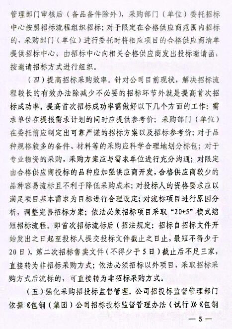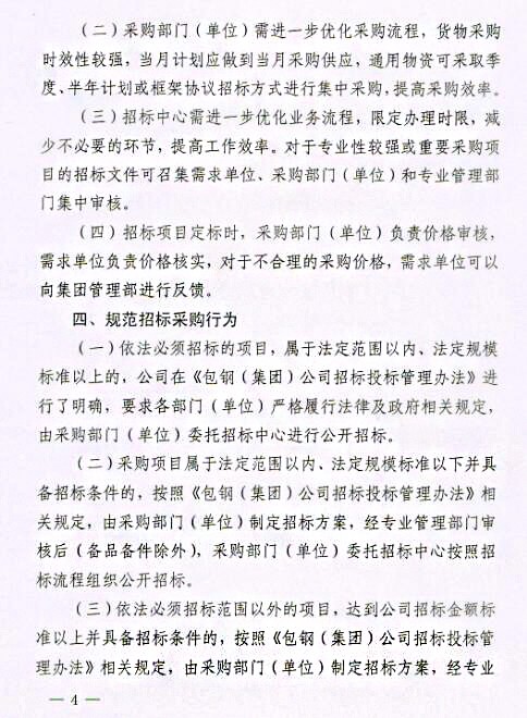 關于印發(fā)《包鋼(集團)公司關于進一步強化采購招投標管理實施辦法(試行)》的通知